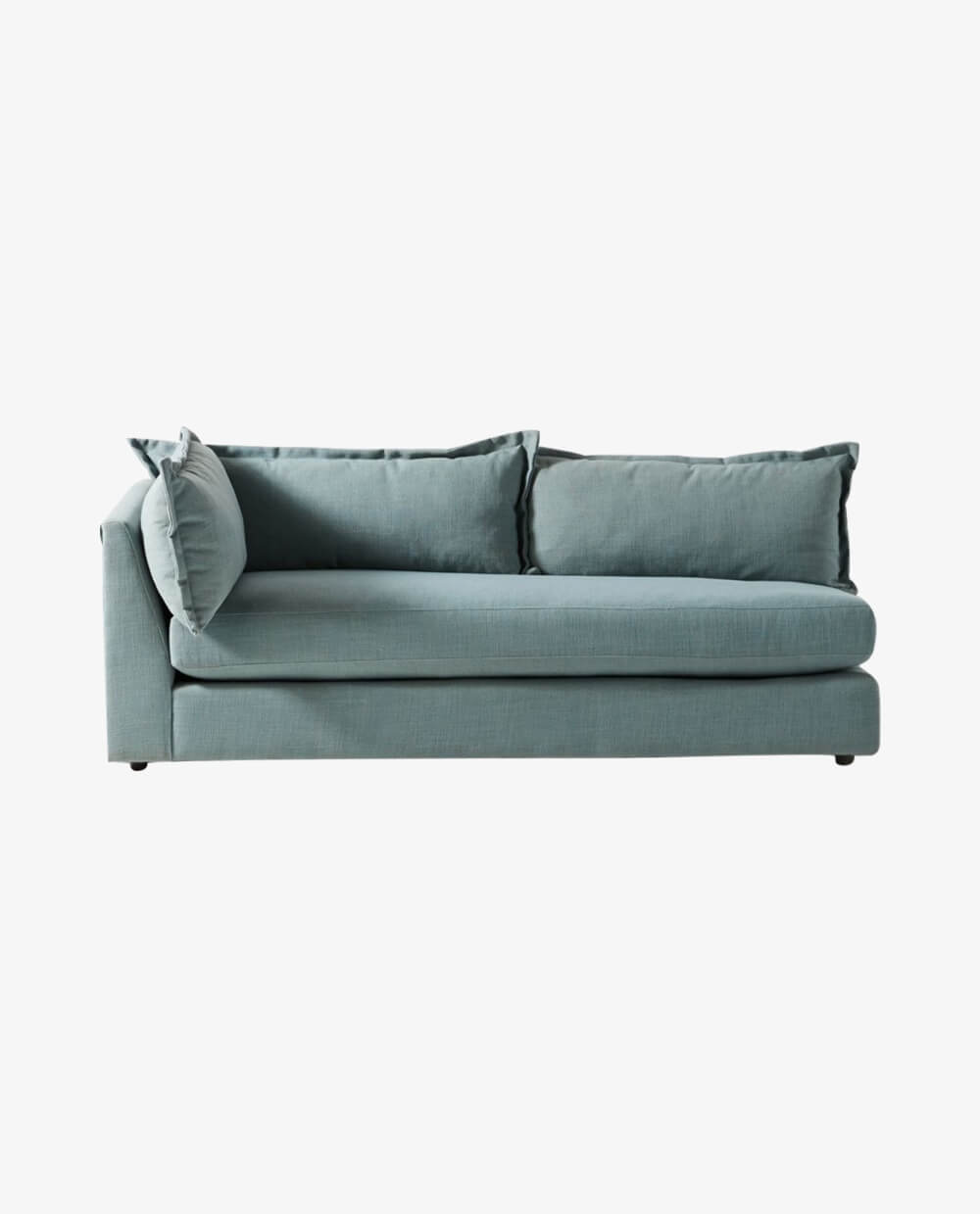 Bring the outdoors in with this light and airy piece – its elegantly curved silhouette boasts caning and brass accents that are well-suited for a luxe sun room, while a deep seat and loose, down-filled cushions create an inviting respite for lounging and entertaining.